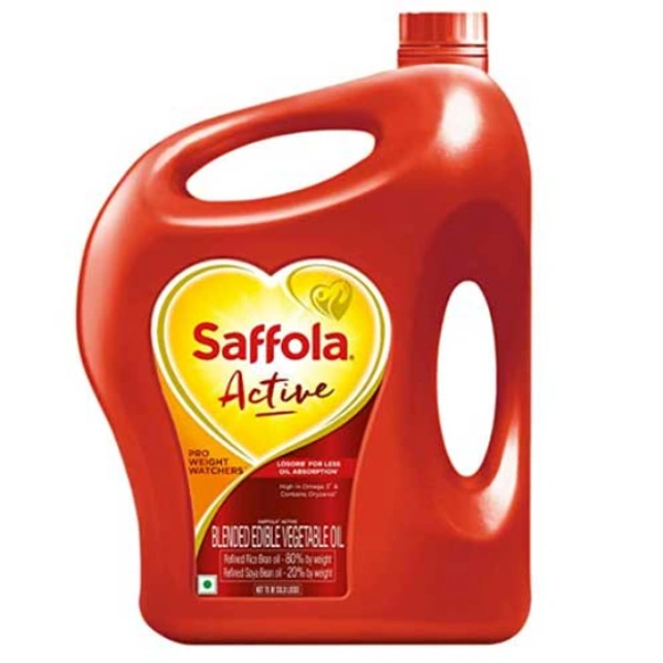 Saffola Active Refined Cooking oil | Blended Rice Bran & SoyaBean oil | Pro Weight Watchers | 5 Litre jar