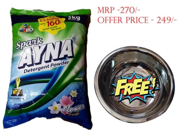 SPARK AYNA DETERGENT POWDER 3KG PACK & GET FREE S.S. GAMLA WORTH RS.160